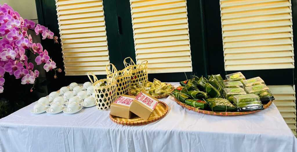 Cốm Hà Nội luôn được xem là một món quà biếu tinh tế và ý nghĩa. Khách tham dự tiệc có thể được tặng những chiếc bánh cốm hoặc gói cốm khô mang về, như một vật kỷ niệm, kéo dài hương vị mùa thu Hà Nội sau khi bữa tiệc kết thúc.