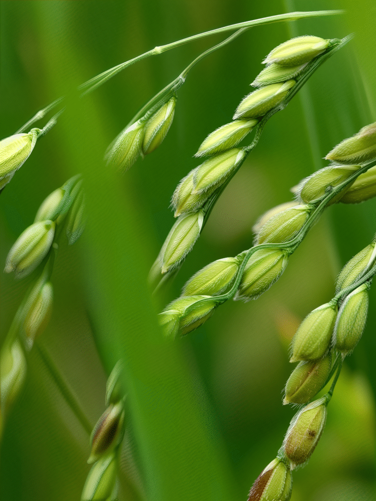 • Lúa Non (Hạt còn sữa): Đây là lúc hạt thóc nếp đã chắc xanh, khi bấm thử, chất lỏng trắng đục như sữa sẽ trào ra. Nếu lúa quá non, cốm sẽ bị bết dính và nhão. Nếu lúa quá già, cốm sẽ bị cứng, gãy nát, không giữ được màu xanh mướt tự nhiên.